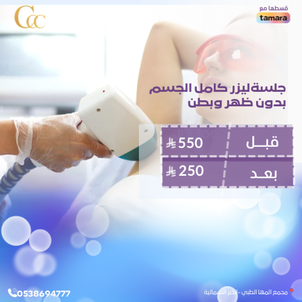 جلستين ليزر كامل الجسم بدون ظهر وبطن