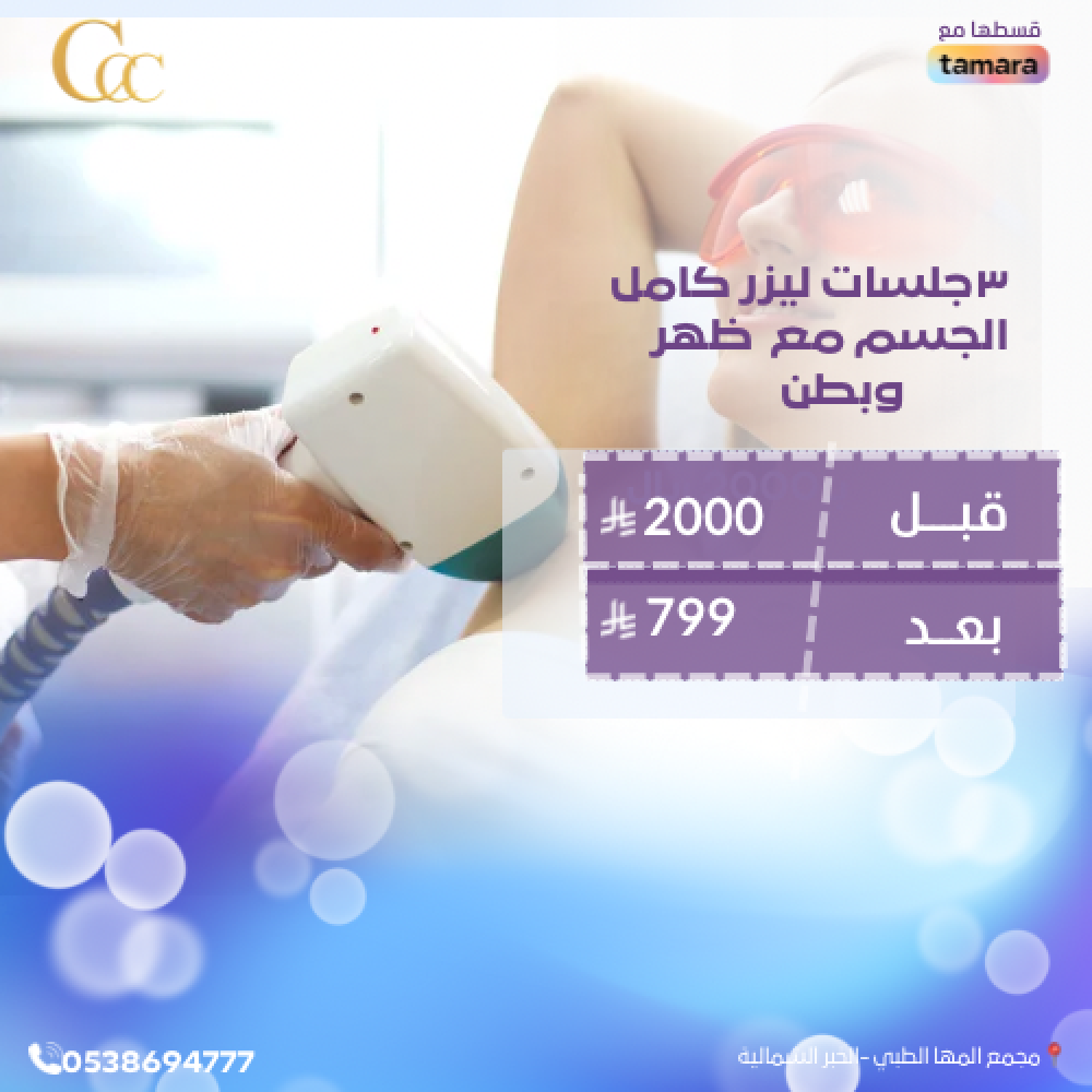 ٣جلسات ليزر كامل الجسم مع بطن وظهر